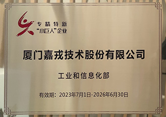 3、獲國家工信部評為專(zhuān)精特新“小巨人”企業(yè)